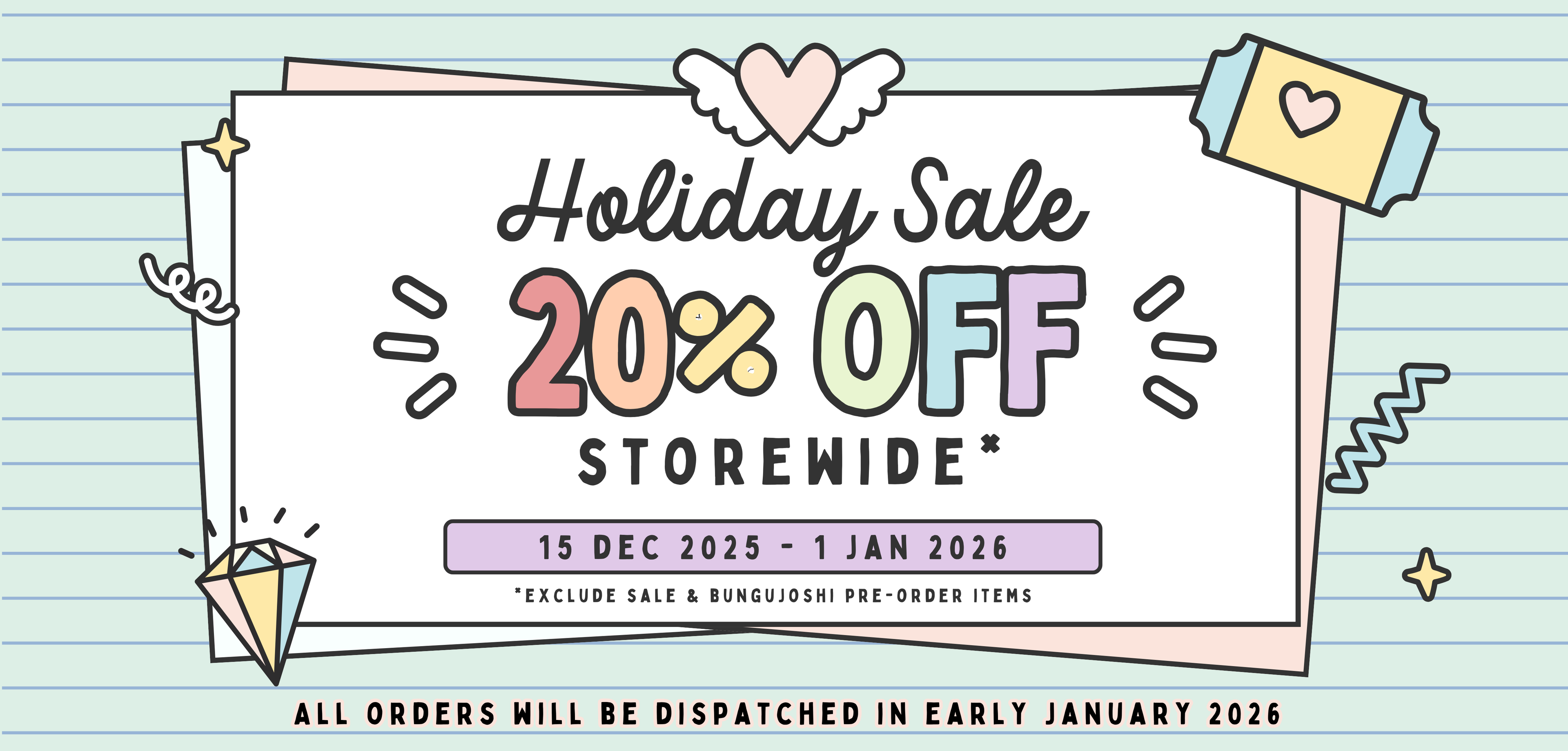 HOLIDAY SALE STARTED! 20% OFF STOREWIDE!! ALL ORDERS WILL DISPATCH IN EARLY JAN 2026