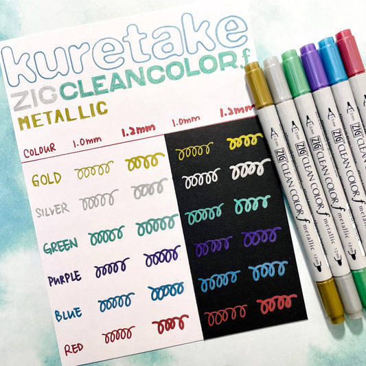Kuretake ZIG Clean Colour F Twin Tip Markers - Metallic