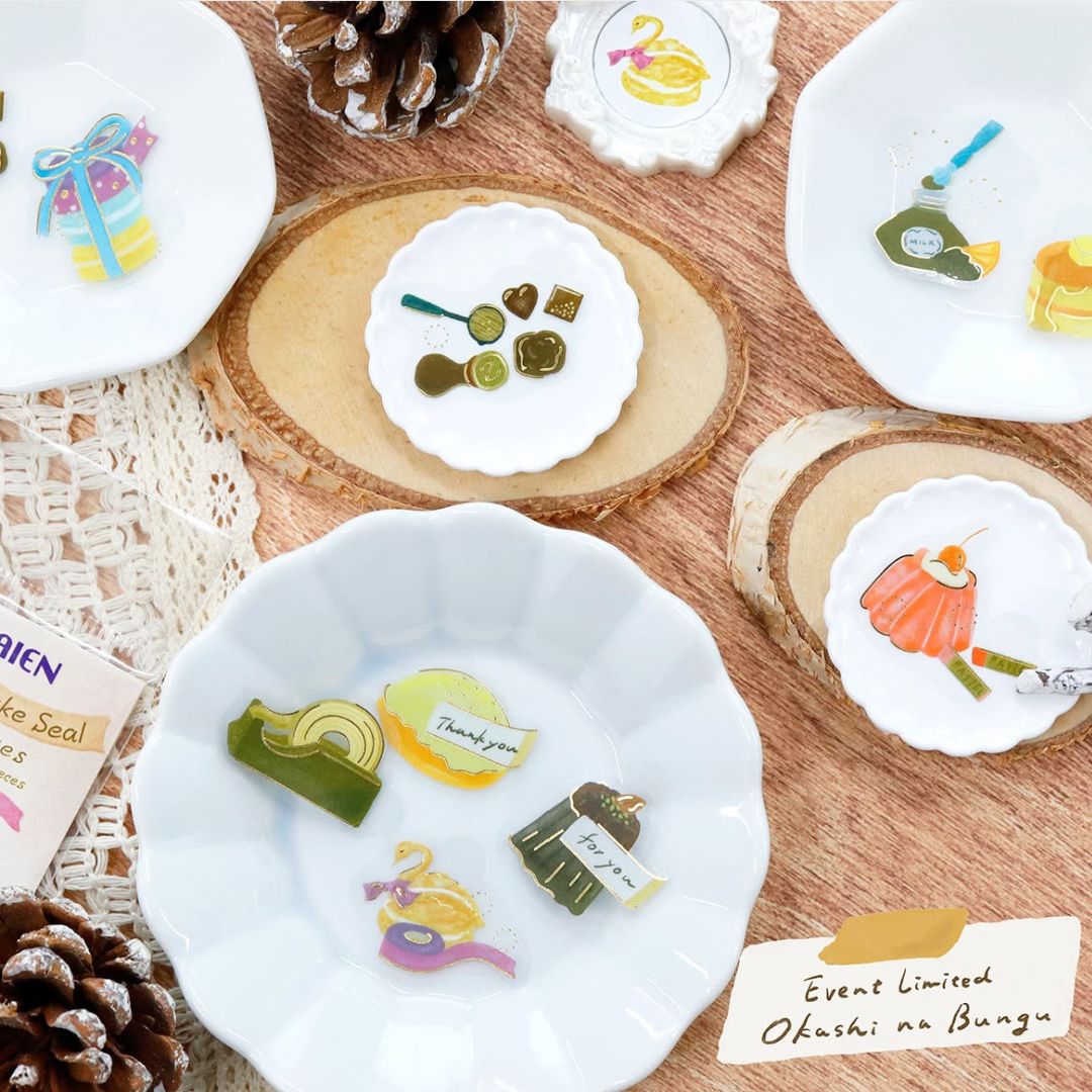 • Clear flake stickers featuring stationery and sweets.